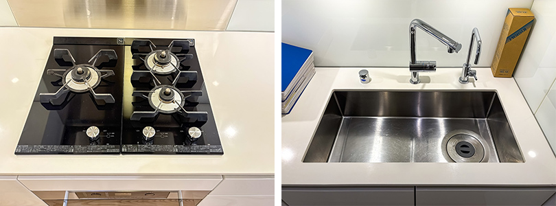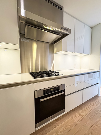 また、ミーレのオーブン や食器洗い乾燥機のほか、ディスポーザーも設置されているなど、機能的なキッチンでもあります。