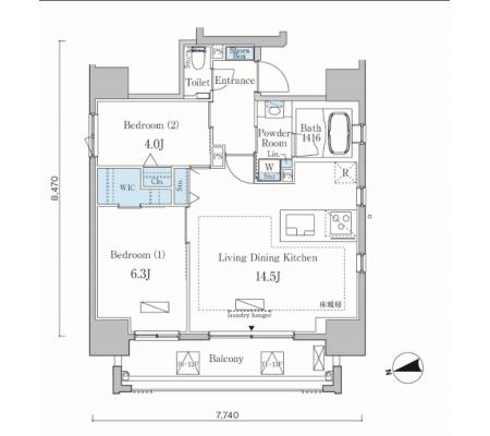 三田ガーデンヒルズ ノースヒル 3階 300 賃料 / 管理費・共益費: 460,000円 / 20,000円 敷金 / 礼金: 2.0ヶ月 / 1.0ヶ月 間取り / 面積: 2LDK / 56.24㎡ 新築 駅近 分譲賃貸 お問合せ 追加 東京都港区三田一丁目4番58号 東京メトロ 南北線 麻布十番 徒歩5分